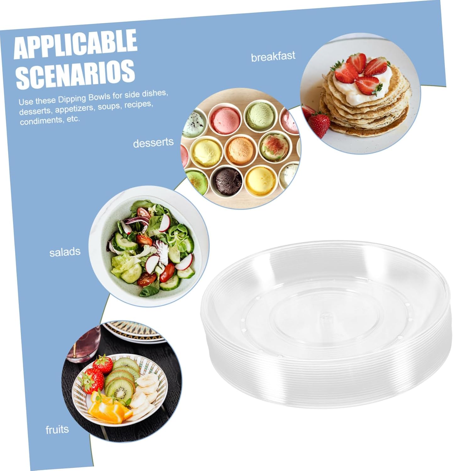 Package Include 5 pcs x 20 × small plates Features -Size:13.50X13.50X1.50cm/5.31X5.31X0.59in Mustard Dish -Color:Transparent Seasoning Dishes -Material: Chocolate Plates - You can organize snacks, fruits, vegetables, fried food, Sushi, cheese, salad, nuts, appetizers butter dish. - Can be placed in the living room table, bedroom table, can also be used at outdoor picnics or camping soy sauce dish. - Easy and simple to use, not easy to break or deform, reusable and can be applied for longtime Plastic Serving Plates. - Placing this plate at home can not only reflect the taste value of the owner, but also attract the attention of guests Candy Storage - It has suitable volume, won't take up too much space, and you can place it on the desktop. These round plates can be stacked evenly in a small place and saving your cupboard space. Make your kitchen cupboard dipping sauce bowls.Goods InformationFruit Storage Plates One of the essential home supplies for every home.Sauce Bowls Mini Adoption of material, the plate is convenient and practical for longer term use.Fruit Plate Creative design with fine workmanship, widely used for candy, fruit, snack, dry food and much more
