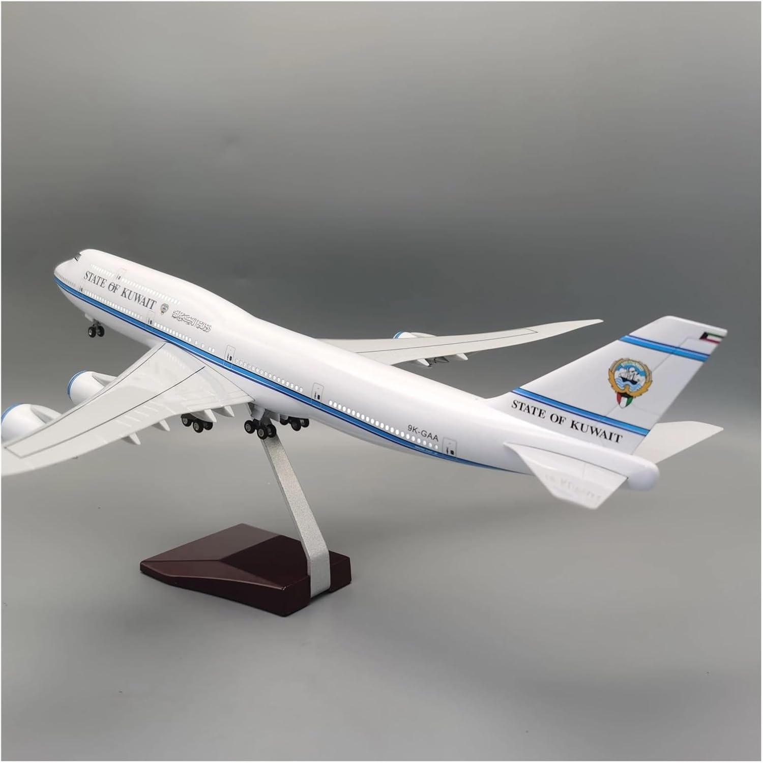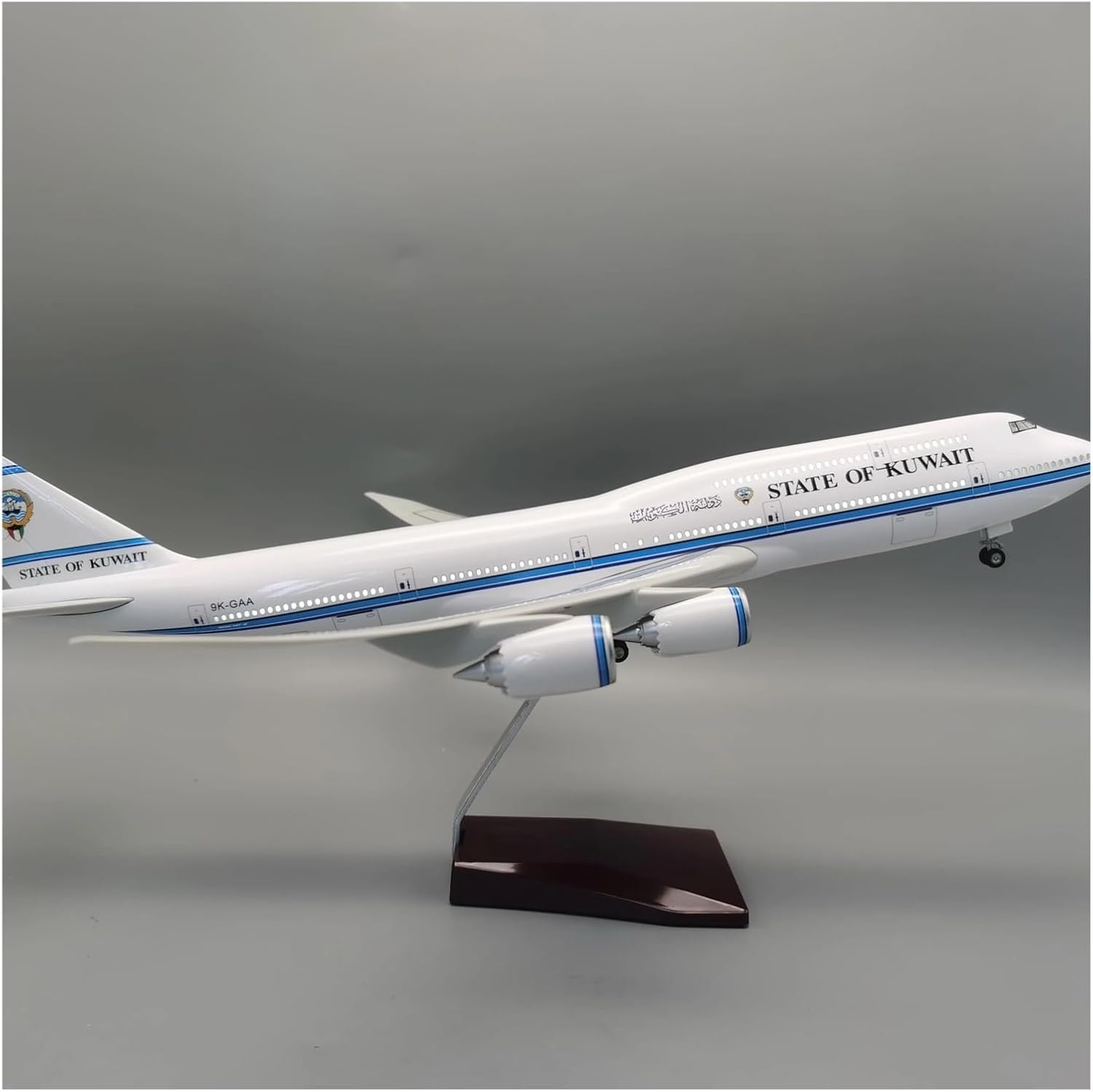 Die-cast aircraft models are designed to mimic flight states like takeoff and landing, showcasing dynamic beauty. Their fuselage lines mirror real aircraft, giving the sensation of holding the genuine article in your hands. This allows enthusiasts to deeply appreciate the intricate construction of aircraft while handling the models.Name: 1/150 Model Aircraft B747 Kuwait Material:ResinAge Range: 14+Purpose: Collecting, gifting, souvenir, static display, appreciation, hobby, toy, exhibition.