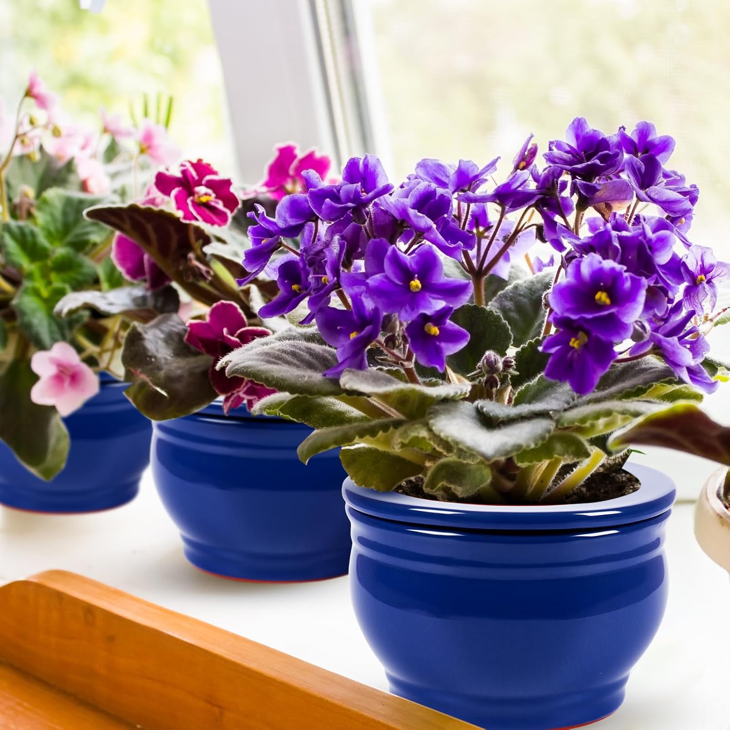 • Stylish Blue Ceramic Design: enhance your home or office with our elegant African violet pots; Crafted from ceramic, these blue pots add a modern and chic touch to any space; Their durability ensures they remain lovely and crack-free, providing long-lasting style and functionality