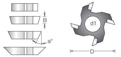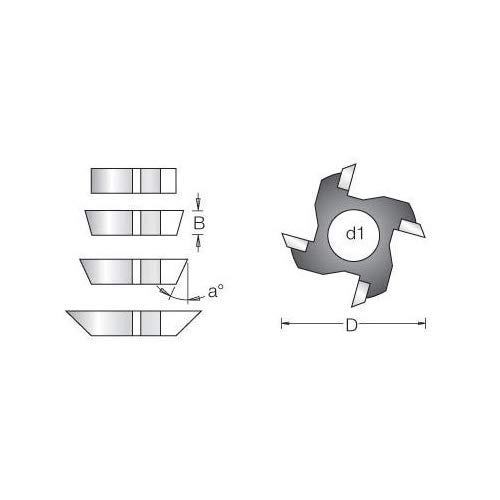 Cutters for the 47400 and 47404 assemblies are available separately., #47500, diameter (D) 7/8, angle (a°) flush, cutting height (B) 1/4, usage top or bottom, D1 5/16, Wings 4, 47500 carbide Tipped 4 Wing flush cutter for assemblies 7/8 dia x 1/4 x 5/16 bore