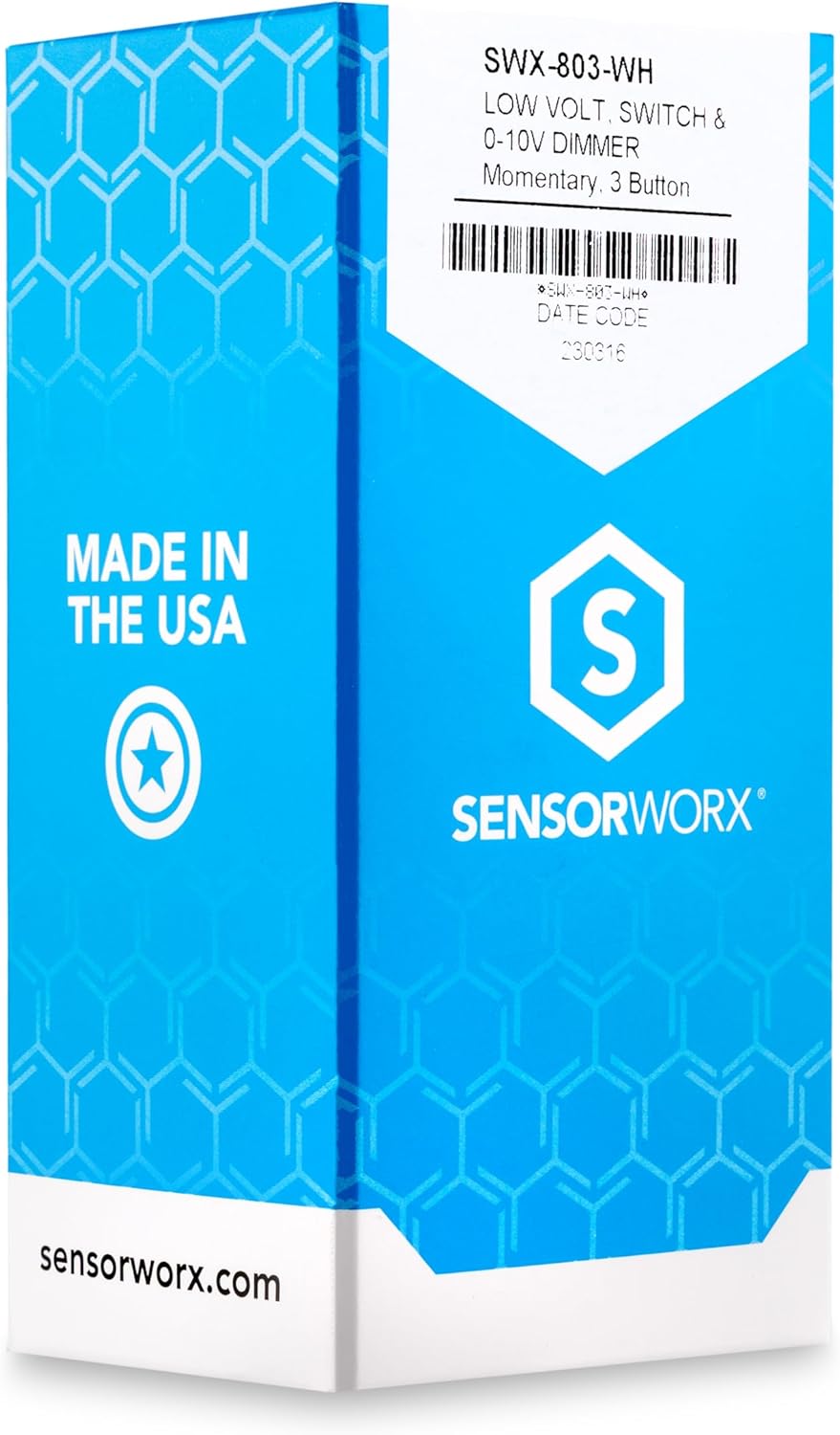The SENSORWORX low voltage dimmer provides an attractive companion wall station for a low voltage sensor system. Many spaces now require by code (e.g., ASHRAE 90.1, IECC, Title 24) manual on, partial-on, or full range dimming user operation in addition to an occupancy sensor providing automatic off control. The simplest way of achieving this is by adding a low voltage wall station that interfaces with the power pack controlling the rooms lighting. Adding a switch to a low voltage sensor system also enables users to override a space’s lighting off if necessary. The three-button dimming unit has an integrated 0-10V output, intuitive raise/lower buttons, and a five LED level indicator.