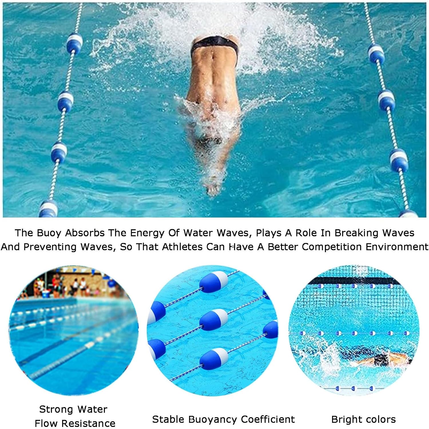 This swimming pool safety dividing rope is designed to effectively create separate zones in your swimming pool, enhancing safety and organization while minimizing wave disturbance. **Key Features:** 1. The swim lane floats are strategically arranged, providing approximately 2 float balls for every 100cm, ensuring a stable and effective barrier. 2. The vibrant colors of the swim lane line enhance visibility, making it easy to see in both indoor and outdoor settings. 3. Our buoy dividing rope is user-friendly; it can be easily disassembled for cleaning and is quick to install, allowing for hassle-free setup and maintenance. 4. The oval design of the floats is specifically crafted to absorb waves, contributing to a calmer swimming environment. **Product Details:** - **Name:** Floating Pool Safety Divider / Pool Divider Rope - **Material:** Durable plastic and nylon rope - **Color:** Eye-catching blue and white - **Float Size:** Each float measures 10cm long and 7cm wide - **Configurations:** Available in lengths of 100cm, 300cm, 600cm, 900cm, 1200cm, 1500cm, and 1800cm - **Ideal Settings:** Perfect for homes, swimming pools, underground pools, and shallow beaches. **Package Includes:** - 1 x Swimming Pool Safety Dividing Rope **Usage Tips:** - Other items shown are for illustrative purposes only. - Please allow a 1-2 cm error in size measurements, as this is a normal occurrence. - Actual product colors may vary slightly due to lighting and screen differences. Enhance your swimming experience with our Floating Pool Safety Divider, ensuring a safer and more organized space for you and your loved ones.