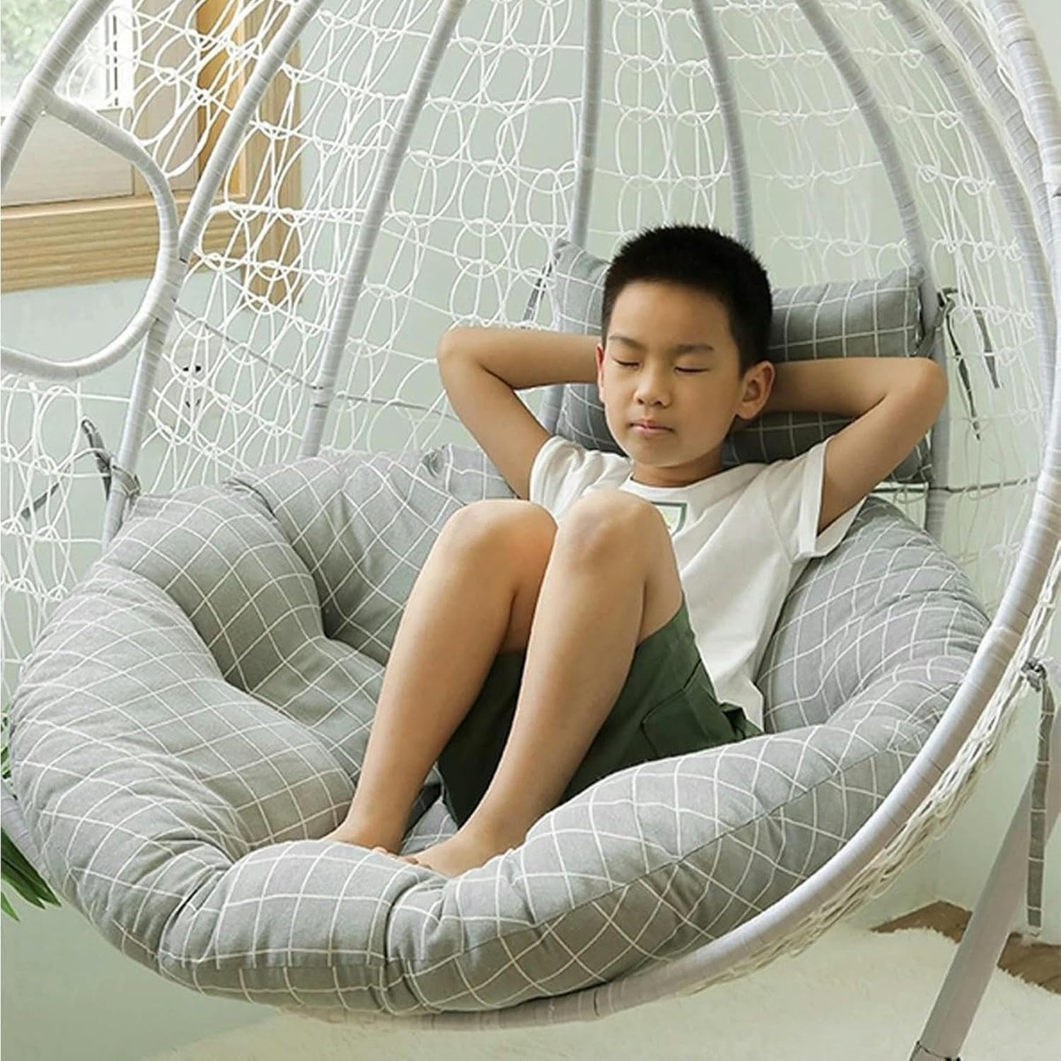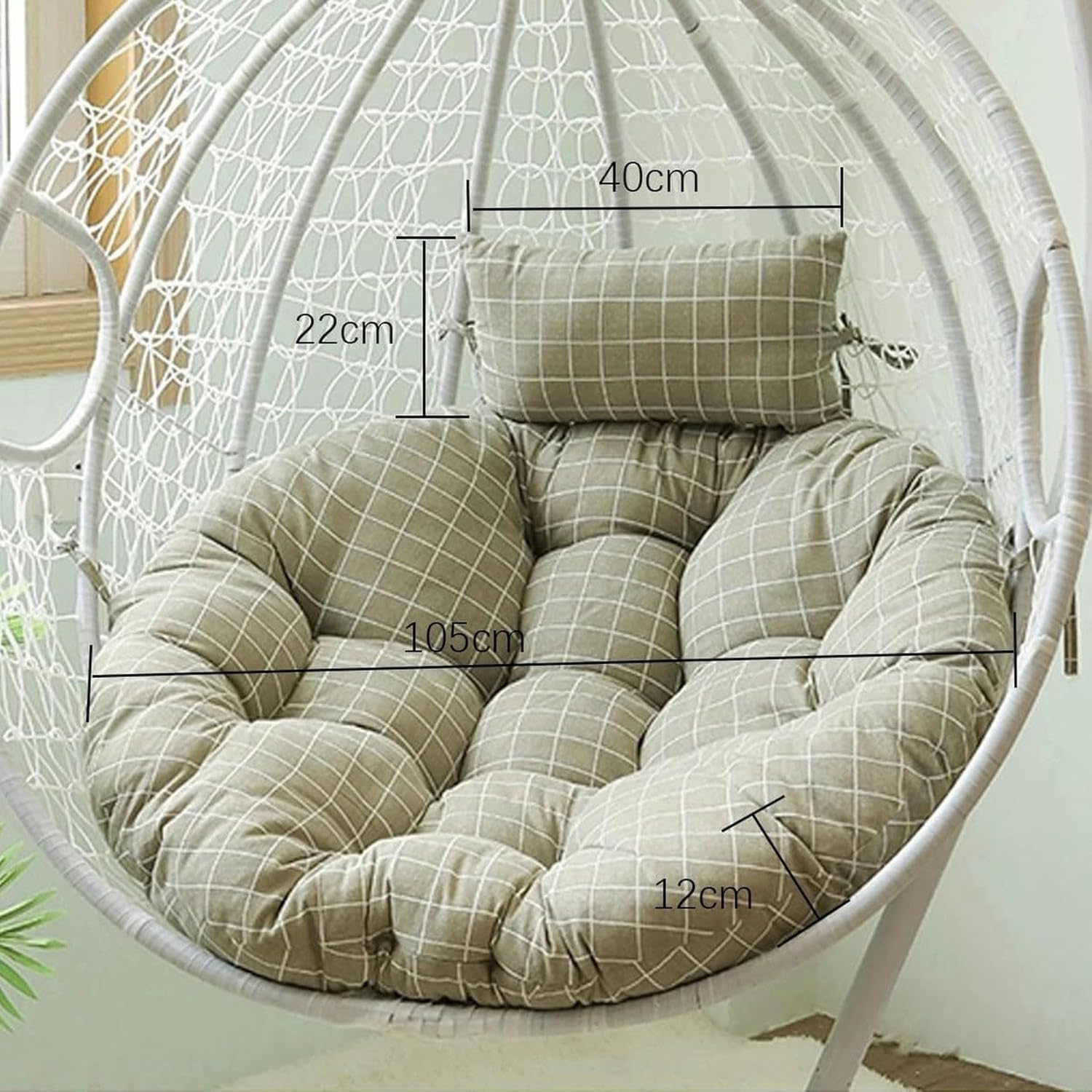 Add a touch of style and comfort to your home furnishings with our wide variety of chair cushions. Makes you more comfortable sitting on wooden or hard chairs.1.These cushions are thicker, softer and more comfortable than ordinary cushions.2.Concave-convex design, never feel the structure of a swing chair.3.Comfortable and breathable, good for relive stress.4.Wide range of applications for most chaise lounges.SpecificationSize: 105cmMaterial:Polyester Cover+PP CottonPlease Note: After unpacking, leave it under the sun about 5-7 days and gently pat up or just stick it in the dryer for 15min to making it return its fluffy shape. Please use delicate cycle and cold water for machine wash,and delicate mode for dryer. Do not use Bleach.