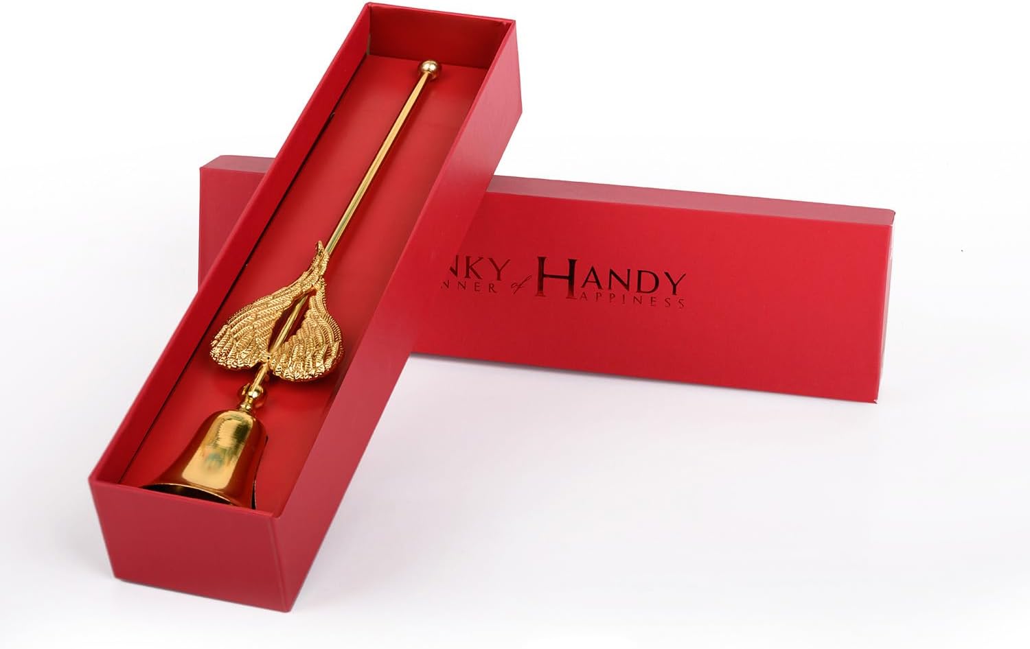 Add a touch of symbolism, elegance, and refined craftsmanship to your candle ritual with the MINKY HANDY Heart-Shaped Angel Wing Brass Candle Snuffer. Designed as a bell-style flame extinguisher with a long handle, this decorative accessory combines beauty and function in a timeless vintage form.Crafted from high-quality brass, this candle snuffer is finished in elegant gold or antique bronze tones, offering durability and a luxurious appearance. The heart-shaped design paired with delicate angel wings creates a unique and meaningful accent that enhances candleholders and elevates home décor in both classic and modern spaces. Its solid construction ensures long-lasting use, making it a reliable and stylish addition to your candle accessories.This bell candle extinguisher is designed to safely extinguish flames without smoke, ash, or wax splatter. By gently covering the flame instead of blowing it out, it helps protect the wick and extend the life of your candles. It is an essential part of any candle care kit or wick set accessory, suitable for everyday use or special occasions.The long handle provides comfortable reach and control, allowing you to extinguish candles safely, even in deeper holders or decorative arrangements. Whether used as a functional tool or displayed as a decorative snuffer, it adds character and sophistication to your space.Perfect for fall and winter accessories, Thanksgiving décor, and vintage-inspired interiors, this luxury candle snuffer also makes a thoughtful Christmas or Xmas gift for men and women. Ideal for candle lovers and home décor enthusiasts, it blends elegance, symbolism, and practicality into one distinctive piece.