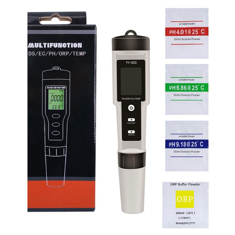 Hydrogen Water Tester, 4 in 1 pH H2 ORP Temp Test Kit, Dissolved Hydrogen Test Pen for Hydrogen Water Bottle, Hydrogen Water ppb/ppm Meter, Accurate pH Hydrogen ORP Meter with Backlight