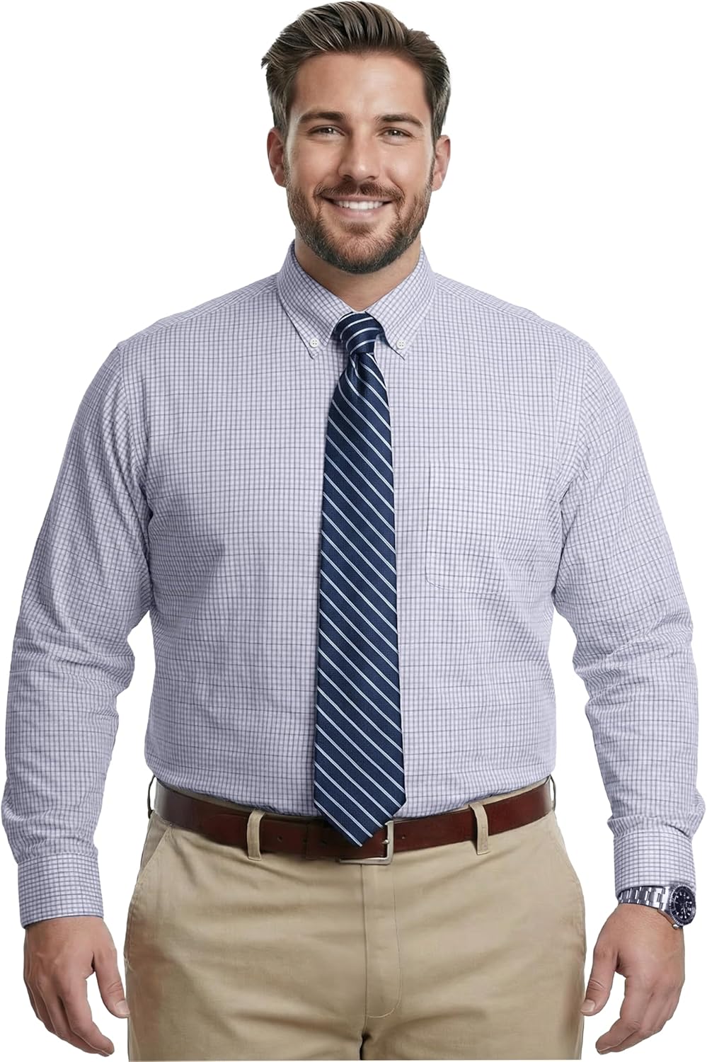 Big and Tall Dress Shirt Long Sleeve Wrinkle Free Stretch Button Down Collar