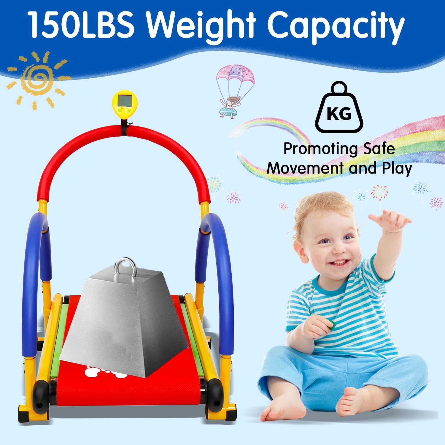 Introducing our Kids Workout Exercise Equipment Collection, designed to inspire active play and promote a healthy lifestyle for children aged 3-7. This versatile kids treadmill is perfect for indoor use, allowing your little ones to burn off energy on rainy days while developing essential fitness habits. With a robust construction made from powder-coated alloy steel, this kids exercise equipment is built to endure energetic play and supports children weighing up to 110 pounds. The stable base ensures safety during use, allowing your child to confidently engage in their workout routine. Create a fun and engaging indoor play gym that encourages movement and activity throughout the day. The treadmill features an EVA-coated deck for added comfort and grip, making it a perfect addition to your child's exercise regimen. Its compact dimensions of 31.5” L x 25.6” W x 30.7” H make it suitable for various spaces, ensuring that fitness can be incorporated into any home environment. Please note that the display requires 2 AA batteries (not included). Packaged conveniently as a single unit, our Kids Treadmill is an excellent way to motivate your child to stay active while having fun. Make playtime a healthy habit with this essential piece of kids workout equipment, and watch your child enjoy the benefits of regular exercise!