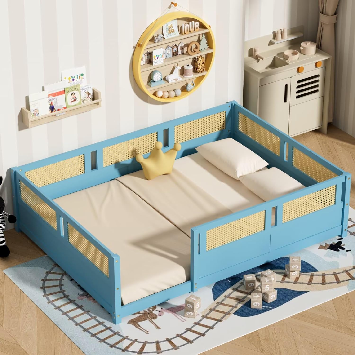 This solid pine Montessori floor bed sits off the ground, letting you climb in and out safely while building confidence.—no box spring needed. easy assembly means bedtime independence starts today.Product InformationMain Color: White, Mist Blue, Sky blueMain Material: Pine Wood + MDFBed Size: Twin/FullTwin Size: 77.1*41*20.8inFull Size: 77.9*56.9*20.8inKind RemindManual measurement has been used, there may be some reasonable error.Product pictures are for reference only. Real product's color may be a little different from the image due to the lighting or monitor's display.If there is any damage, missing parts, defect with the item you received, just don't worry. You can reach us for support.