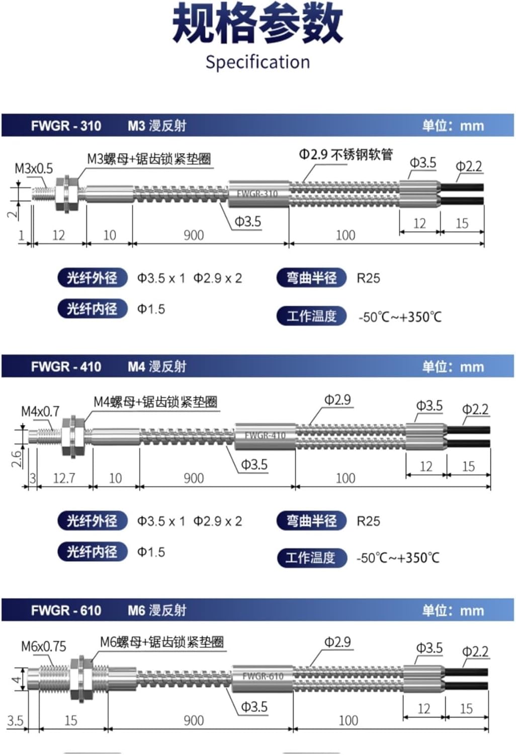 Pressure SensorsHigh temperature resistant glass fiber optic sensor probe M3M4M6 for reflective right angle 350 degree edge banding machine induction