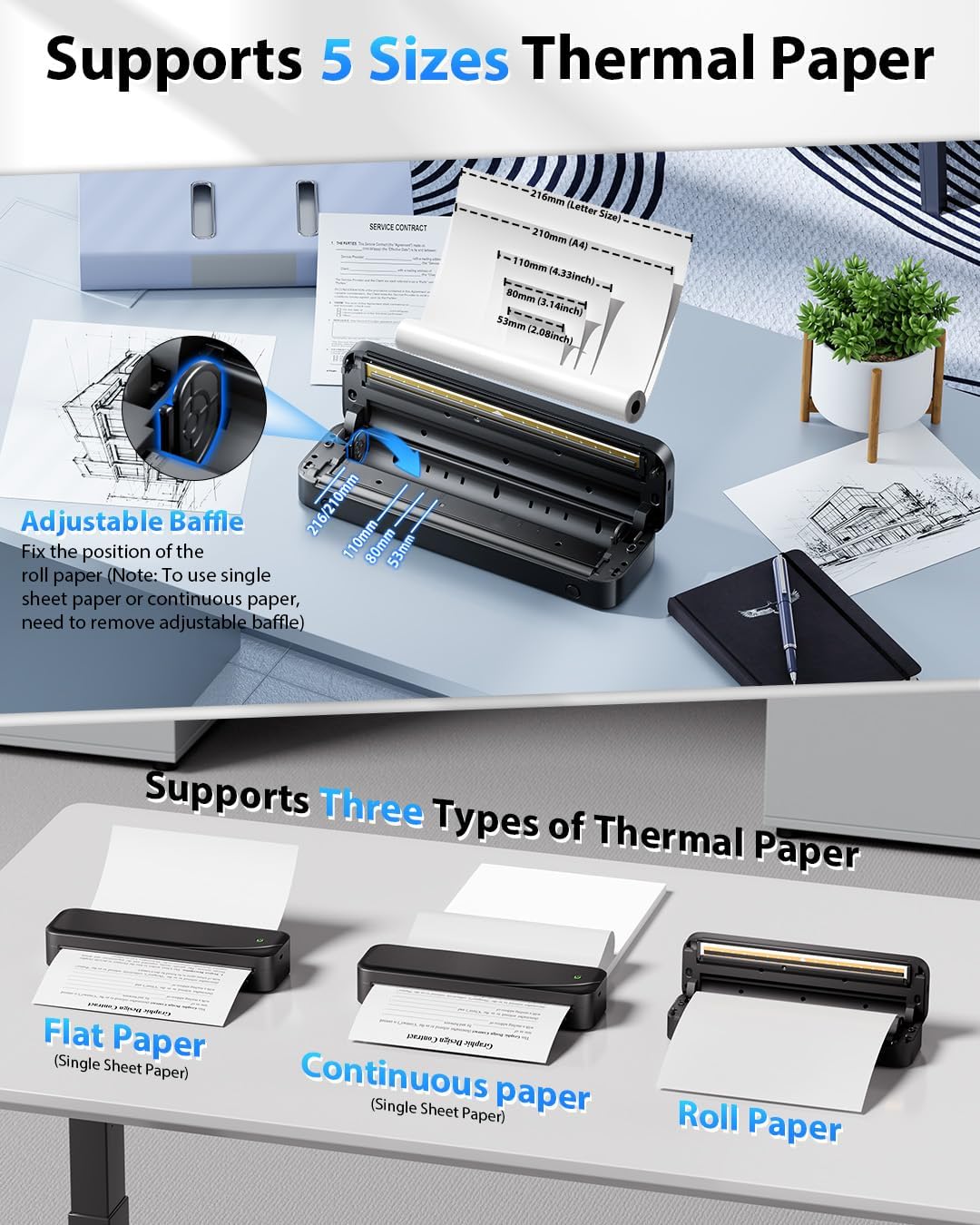| Model Series | inkless portable printer, portable printers wireless for travel, portable thermal printer, portable wireless printer, thermal printer 8.5 x 11 |