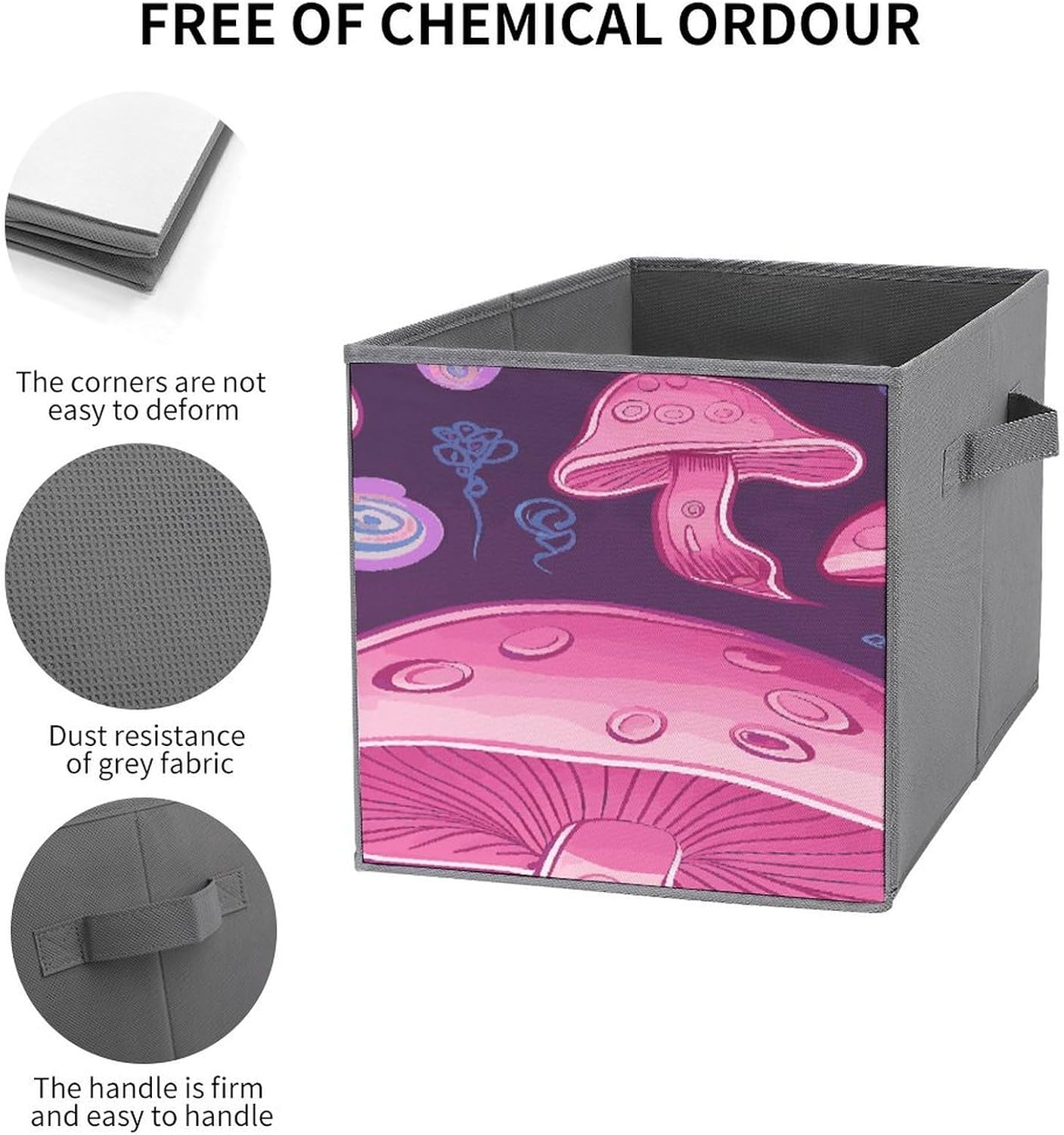 Pink Mushroom printed Fabric Storage Bin Provides An Effective Solution For Storage And Organization. Can Maintain The Orderliness Of Household Items. Large Storage Bags Are Perfect For Storing Clothes, Baby Products, Towels, Toys, Pet Supplies, And More. Foldable Cubes Storage Bag Is Made With A Unique Style, Exquisite Details, And Craftsmanship. Clothes Organizer Container Is Perfect As A Holiday Gift For Friends And Family