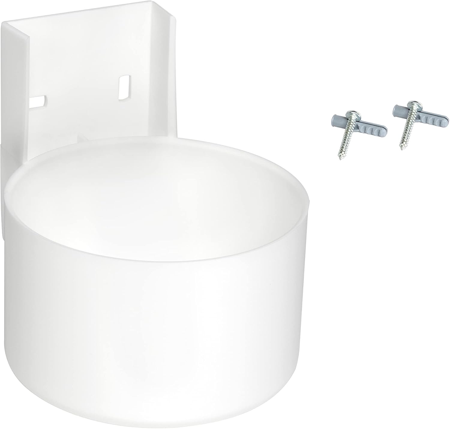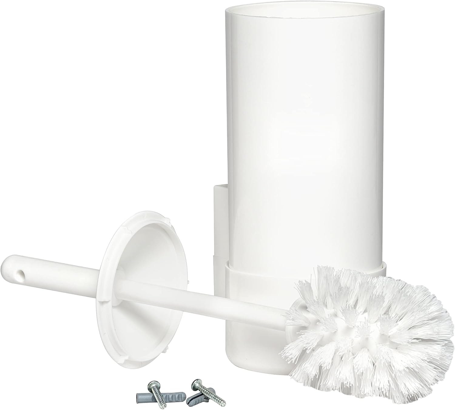 Toilet Brush Made of plastic. With protection Tank, Lid and Wall Bracket. (screws and wall plugs included) Compact and Hygienic. Colour: White Weight: Approx. 200 g Product Dimensions (diameter x height): 11 x 32 cm