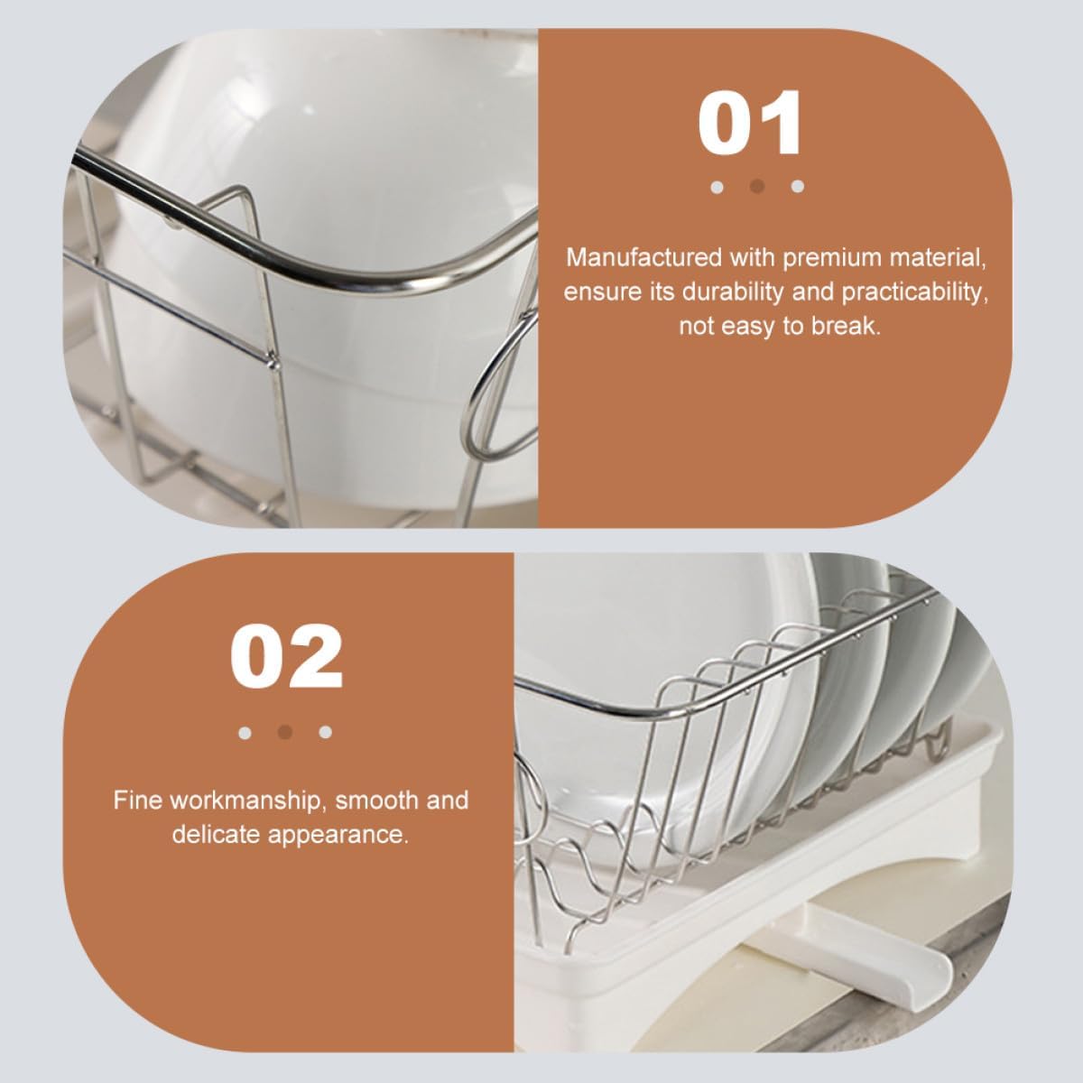 Package Include 1 x Dish Drying Rack 1 x Draining Tray Features -Color: White -Size: 42.00X28.00X15.50cm/16.51X11.00X6.09in -Material: Stainless Steel, PP -Product Info:Drain storage rack -Multifunctional, it can be used to store tableware, fruits and vegetables, also can be as a draining rack portable dish drying rack. -Using high-class , sturdy and rustproof, which . -Portable and lightweight, easy to carry, hold tableware for easy access and keep them dry Utensils Drainer Rack. -Store the dishes, cups, and cutlery after washing, a practical accessory for your kitchen Household Dish Drainer. -With a detachable draining tray, it is convenient to drain water, can be drained, and the direction of the drain can be adjusted to avoid water stains and stains on the table kitchen utensil drain rack.Goods InformationDish Drying Holder Preservation, safe, , convenient and .metal dish drainer This item is the kitchen dish rack which is perfect for storing bowl, chopstick and dish.drainage rack kitchen Made from material, safe and healthy for storage.kitchen utensil drain rack Designed with draining feature, it is a great kitchen dish drying rack