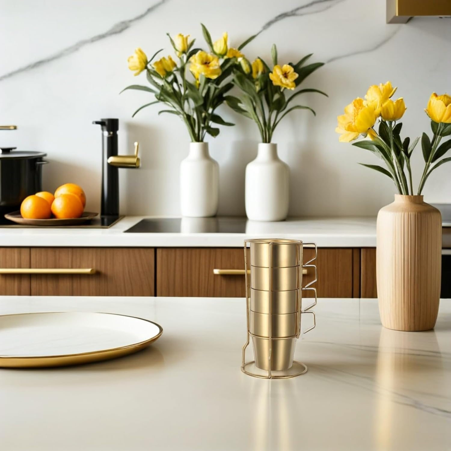 Package List 4 x Insulated Stainless Steel Coffee Cups 1 Characteristics -Spacesaving storage system: the stainless steel mug rack efficiently stores all coffee cups with rack, helping you maintain a neat kitchen while keeping all your coffee mugs with stand close at hand stainless steel insulated cup -Material:Stainless Steel - Size: 21.00X9.50X8.20cm/8.25X3.73X3.22in -Product Info: Double-walled anti-scalding cup for -Fits all drink styles: whether you need a coffee mug for camping or stackable tea cups at home, this insulated coffee mugs set caters to every drink, from hot cappuccino to chilled tea stackable stainless tea cups - Color: Golden - & unbreakable steel: these stainless steel cups are tough, built to last as insulated steel coffee cups, suitable for daily use or as stackable camping coffee mugs for outdoor fun stainless steel coffee cups -Double wall safety & comfort: double insulated cups maintain ideal beverage temperature while protecting hands, making them suit as insulated camping coffee cup for and adults alike double walled coffee cupsGoods Informationcoffee mug for camping Enjoy both style and practicality with stainless steel coffee mugs with handle and a compact stainless steel mug rack.stainless steel tumbler with handle These double wall latte cups double as stackable coffee mugs, allowing multiple beverage options such as tea or cappuccino and offering hygienic grip for safety.insulated coffee mugs The insulated camping coffee cup or steel coffee cups with handle are excellent for kitchens or picnic setups