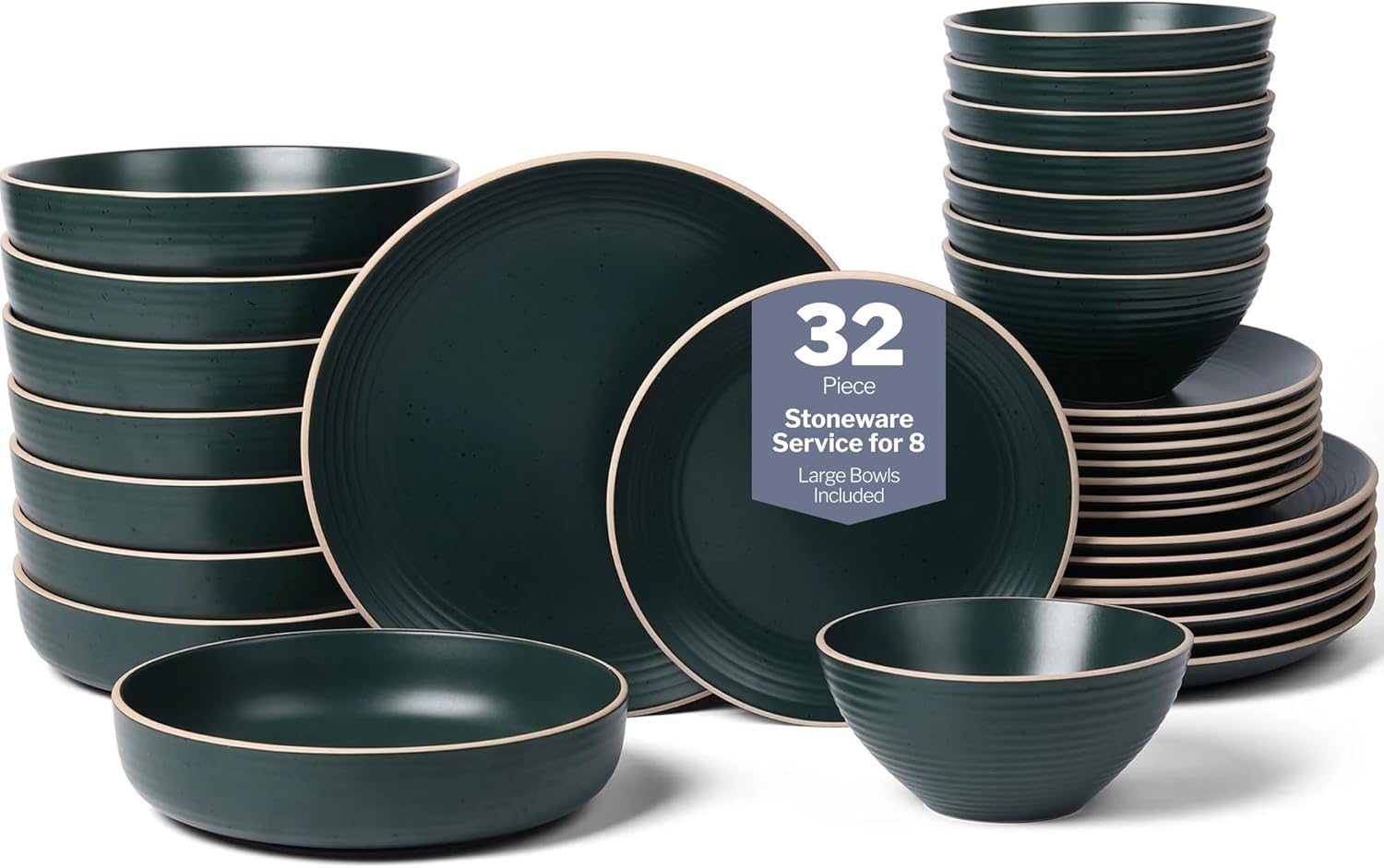• This 16-piece stoneware dish set serves 4 with 4 dinner plates, 4 salad plates, 4 soup bowls, and 4 pasta bowls—ideal for smaller households or everyday dining.