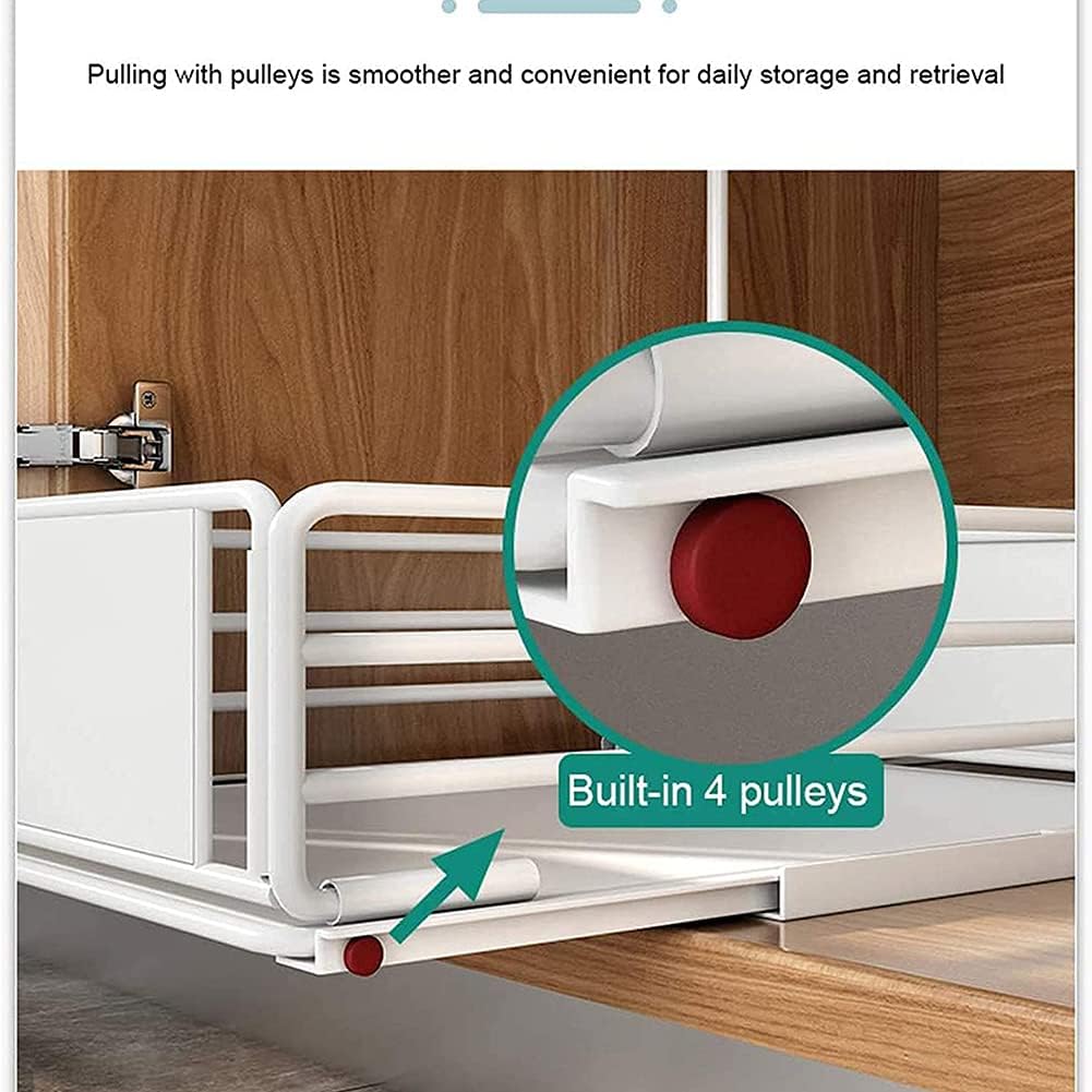 Product name: condiment holder with sliding guide Objective: neatly tidy Product color: black and white Product size: as shown below Product material: carbon steel Product process: baking varnish Inside Package: 1 * Shelf Characteristics: Thick carbon steel, stable and firm, strong load capacity Good texture of piano paint This under counter sink storage box design makes full use of your kitchen space and keeps it tidy. Different storage purposes, very suitable for the structure of the pipeline under the sink and other types of structures under the sink. fast: * Due to manual measurement, small errors may occur. Please refer to the actual product. Thanks for your understanding. * Due to different monitors, the product may have slight color difference. Please refer to the actual product. Thank you.