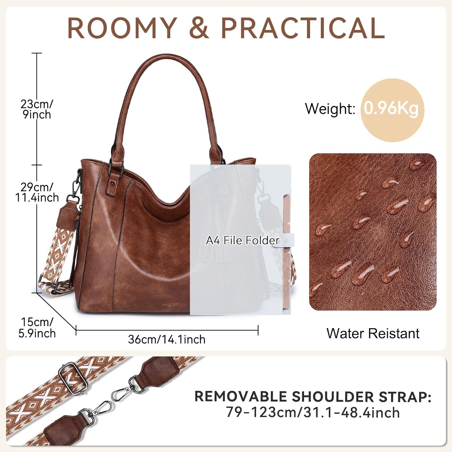 This trendy fashion hobo bag for women is crafted from soft vintage vegan leather, offering a chic blend of retro charm and modern elegance. Designed with a structured yet slouchy silhouette, it features two sturdy top handles and a removable, adjustable bohemian guitar strap for versatile crossover or shoulder wear. The cute detachable tassel pendant adds a stylish touch, while smooth zippers and durable hardware ensure long-term use. Thoughtfully organized with two exterior zippered pockets, a back anti-theft pocket, and a roomy interior including two slip pockets, a middle zippered compartment, and a small zipper pocket, this multipocket handbag keeps essentials neatly concealed and easy to access. Ideal for everyday use, work, shopping, travel, or even as a chic diaper bag, it suits ladies and college girls alike. Both casual and dressy, this popular and elegant purse makes a perfect gift choice for birthdays, Mother’s Day, or any special occasion.