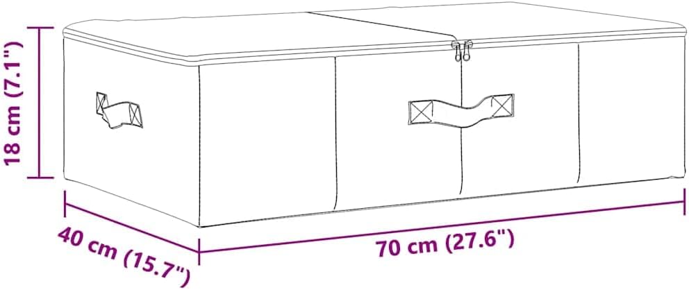 This set of two contemporary storage boxes redefines indoor organization with a sleek design that perfectly fits into any living space. Made from durable polyester and available in a stylish creamy color, these boxes not only offer plenty of room for storing items like toys, books, or accessories, but they also bring a touch of style to your bedroom or living room, making it easy to keep your space tidy while looking great.Ample Storage: Each box has a spacious interior to hold a variety of items, from scarves to books, making organization easy.Elegant Design: The smooth cream fabric gives a polished look that fits perfectly in any room.Foldable Feature: The boxes can collapse to save space when not in use, keeping your area neat and tidy at all times.Durable Handles: Each box is equipped with loop handles made from the same soft fabric, allowing easy lifting and rearranging without discomfort.Versatile Usage: Perfect for multiple rooms; whether in the living area or under the bed, these storage solutions serve a variety of organizational needs.Number Of Items: 2Color: Cream Material: Fabric PolyesterIndoor/Outdoor: Indoor OnlyCover Included: YesRoom: BedroomCapacity: Plenty of room for toys, scarves, socks, booksDimensions: 15.7 x 27.6 x 7.1 in (W x L x H)Min-Max Dimensions: 27.6 x 15.7 x 7.1 in when in use, foldable when not in useWeight: 3.86 lbsLadder: NoBrand: vidaXLDelivery Contains: 2 x Storage boxAssembly Required: YesSKU: 332908EAN: 8720286505304