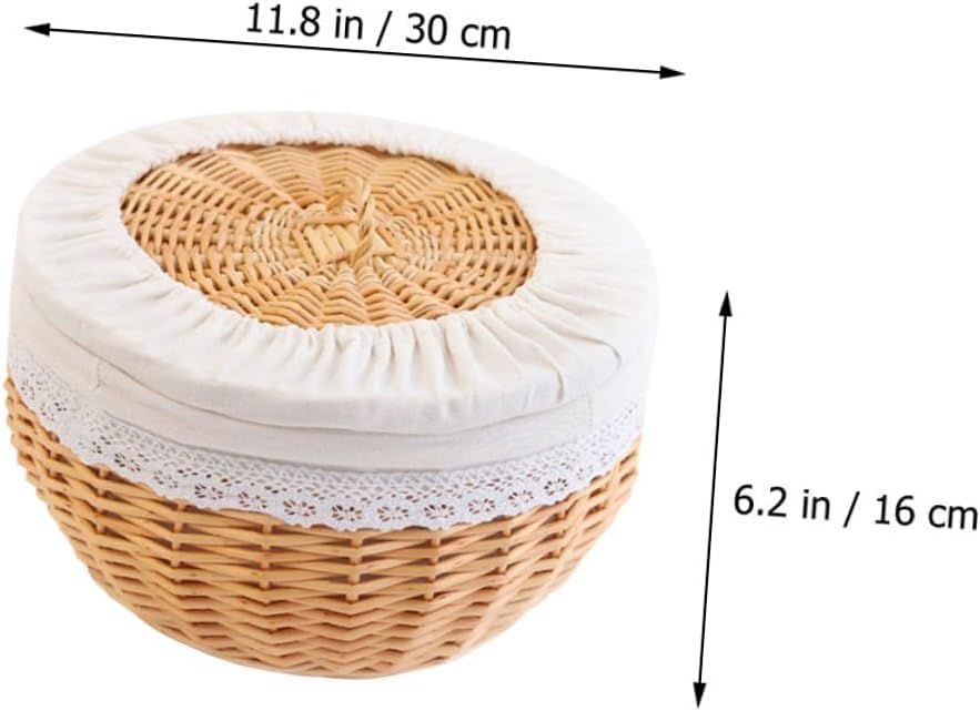 Package Include 1 x Basket Features -Product Info:Food storage basket -Color:Multi -Material:Wood, cloth -Size:30.00X30.00X16.00cm/11.79X11.79X6.29in -Delicate details creates a very simple and generous appearance, decorative and chic fruit basket. -Natural color and fine texture make this basket become a great decoration on the table, bringing natural breath. -The beautiful and lightweight basket is strong, no odor and safe, ensuring that the product is clean and safe basket for pantry. -It is multipurpose, can be used to store sundries, eggs, for arranging flowers, and for decoration serving basket. -Its clever woven look design adds fresh and natural breath to the basket, making it delicate and decorative kitchen baskets for bread.Goods Descriptionhousehold food baskets Suitable for vegetable, fruit and snacks storage.woven snacks basket This product is a woven basket, it looks very beautiful.grocery basket The special design makes you can take it more easily.food baskets Made with premium wood, cloth material, this product is , and you can use it for a long time