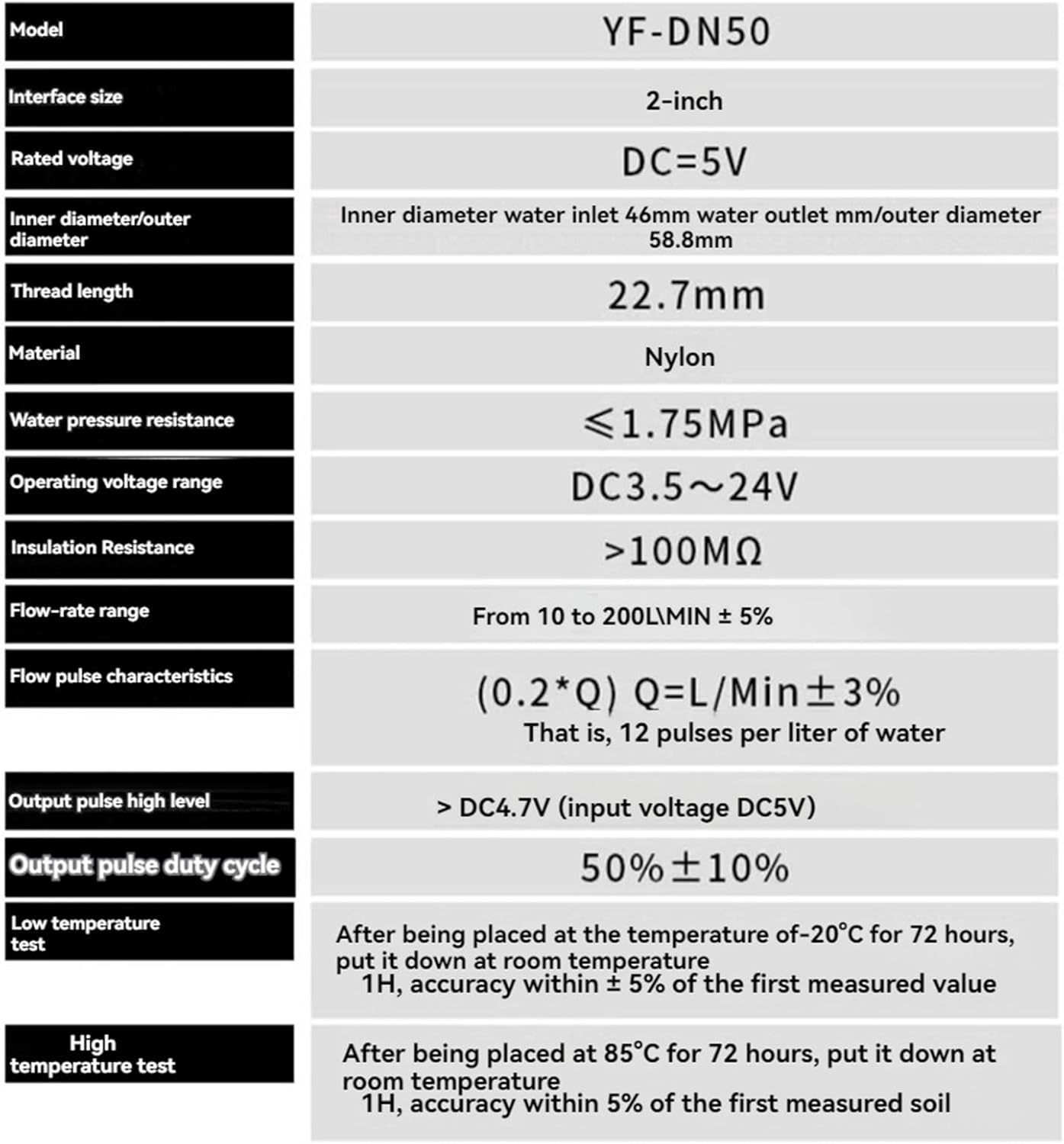 FlowmetersYF-DN50 G2" Inch Water Flow Meter Sensor Flowmeter Caudalimetr Counter Indicator Water Flow System Gauge Device 10-200L/minJoint Pipe Bore Size : 2"Coupling Type : Male NPT ThreadMeasurement Range : 10-200L/minModel Number : YF-DN50 flow meterDIY Supplies : Plumbingflow meter : fuel gaugeflowmeter : water metercaudalimetro : water flow meterplumbing : flowmeter waterfuel flow meter : counterwater flowmeter : flow indicatorfuel flow sensor : fuel flowmeterfuel meter : water sensordigital flow meter : plumbing valvesfuel oil flow meter : flow device